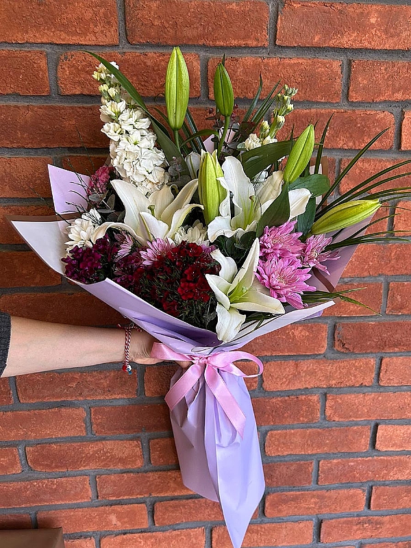 Mevsimin en güzel çiçeklerinden özenle hazırlanmış renkli karışık buket, canlı renkleri ve taze kokusuyla her ortamı canlandırır. Sevdiklerinize zarif bir hediye veya evinize doğanın taze dokunuşunu katmak için mükemmel bir seçenek.